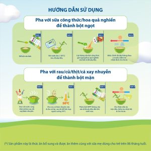 – Có thể linh hoạt trộn cùng thịt cá, rau củ, trái cây để thành các món bột mặn/ ngọt cho bé thưởng thức.
