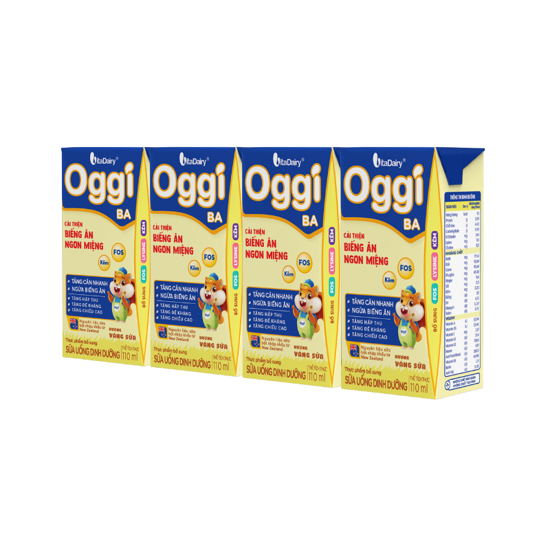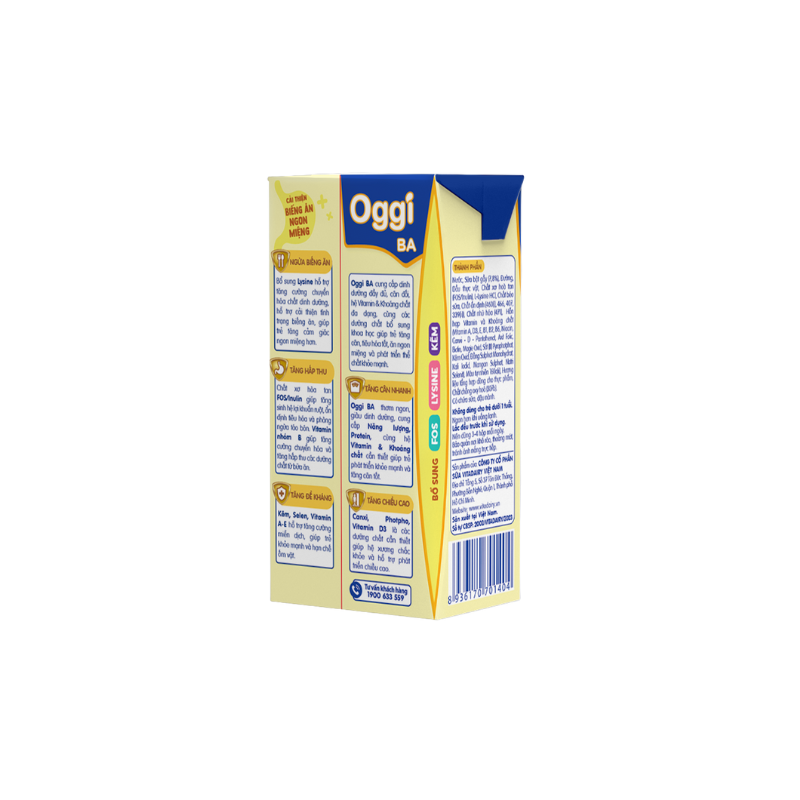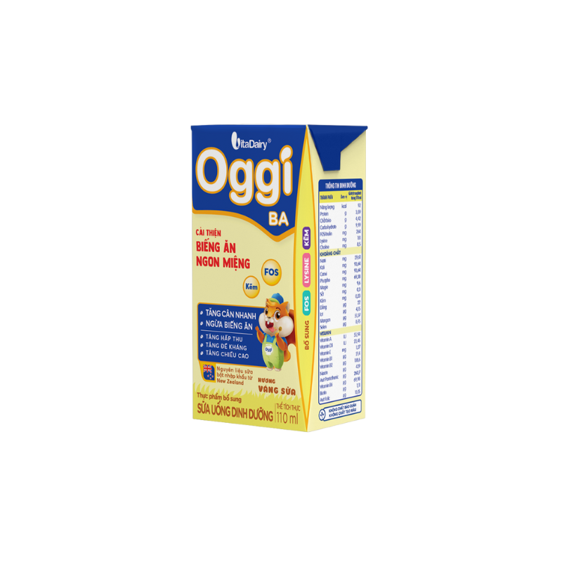 Sữa uống dinh dưỡng Oggi BA sản phẩm dành cho trẻ Biếng Ăn với hương Váng sữa thơm ngon, hương vị mới, giúp trẻ ngon miệng và phát triển thể chất khỏe mạnh. Sản phẩm có nguyên liệu sữa bột được nhập khẩu từ New Zealand. Bữa ăn phụ hoàn chỉnh giúp phát triển toàn diện Đầy đủ các nhóm dưỡng chất chính.