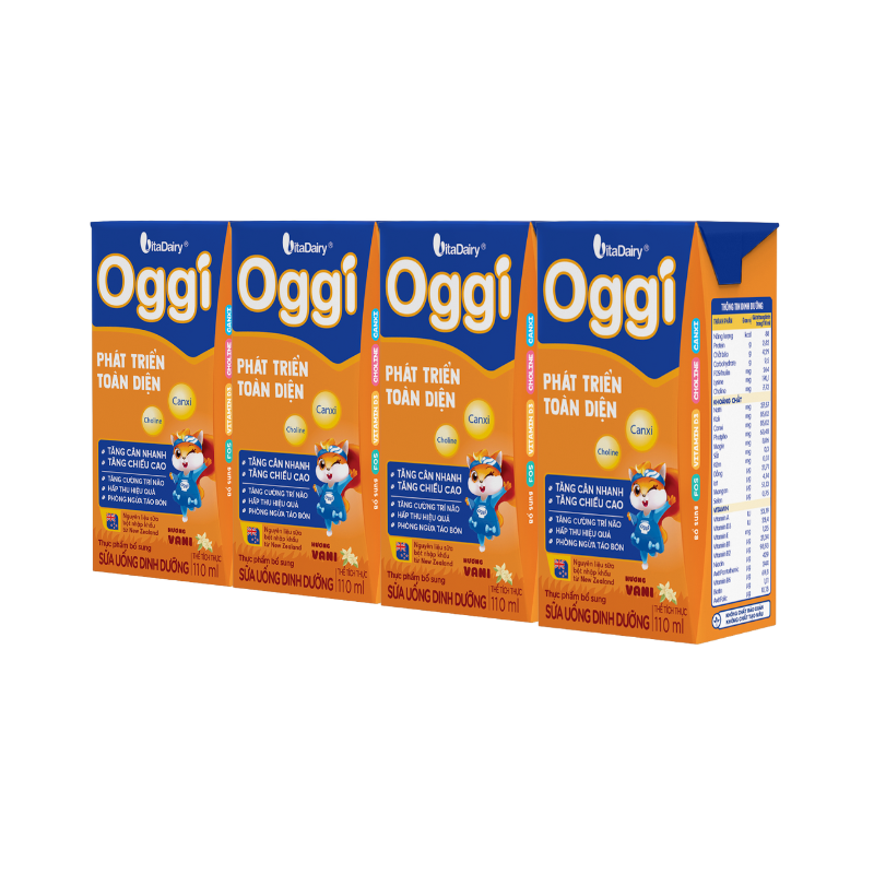 Lốc 4 hộp sữa dinh dưỡng Oggi Vani 110ml (Trên 1 tuổi)
