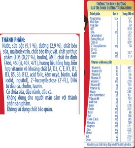 – Đề kháng khỏe, Tiêu hóa Tốt: Hệ Prebiotics kép 2′-FL HMO(2) và FOS, Inulin cùng Sắt, Kẽm, Vitamin A, E, C, Selen giúp tăng cường sức đề kháng, bảo vệ trẻ khỏe mạnh. Chất xơ hòa tan FOS, Inulin hỗ trợ tăng cường sức khỏe hệ tiêu hóa, cải thiện hệ vi sinh đường ruột.