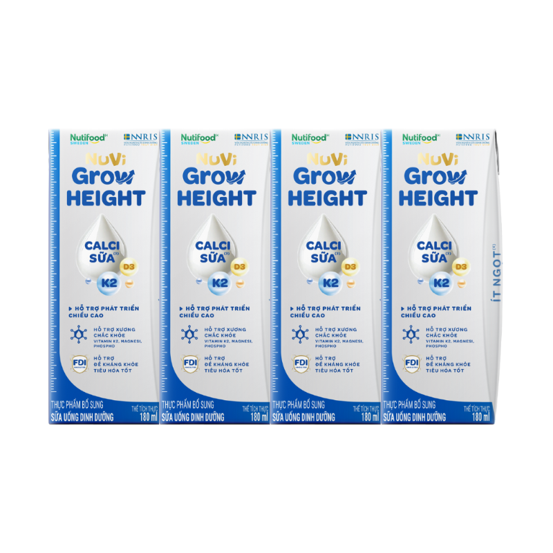 Lốc 4 hộp sữa pha sẵn Nuvi Grow Height 180ml (Trên 1 tuổi) - Hỗ trợ phát triển chiều cao