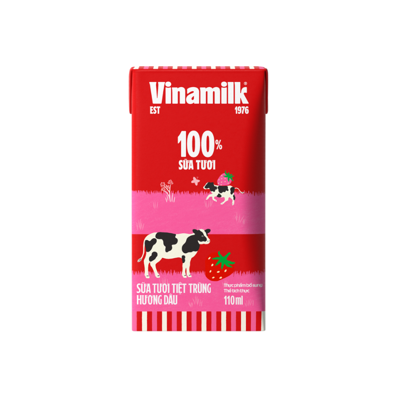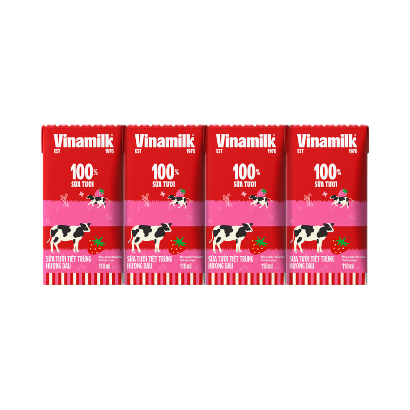 – Sữa tươi tiệt trùng Vinamilk 100% sữa tươi có hương dâu 110ml thơm ngon, dễ uống. Sữa được chế biến từ nguồn sữa tươi 100% chứa nhiều dưỡng chất như vitamin A, D3, canxi,… tốt cho xương và hệ miễn dịch.