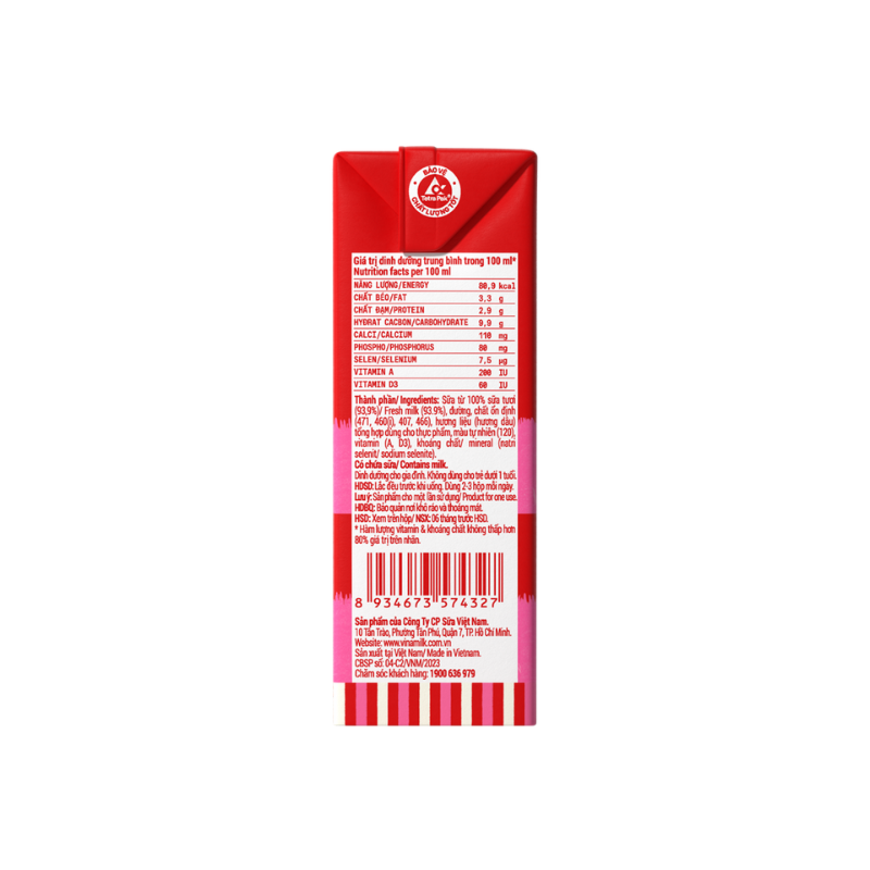 – Lưu giữ trọn vẹn hương vị dâu và kéo dài thời gian sử dụng mà vẫn an toàn tuyệt đối nhờ ứng dụng công nghệ tiệt trùng UHT hiện đại, giúp loại bỏ hoàn toàn vi khuẩn có hại.