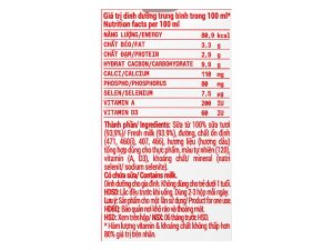 – Giúp bé tăng cường hệ miễn dịch, phát triển xương và bảo vệ thị giác với dòng sữa tươi có đường vị ngọt dịu, được bổ sung hàm lượng Vitamin D3, A và Selen dồi dào.