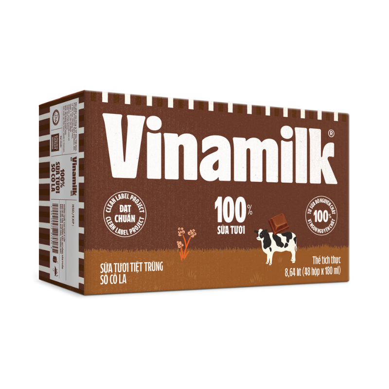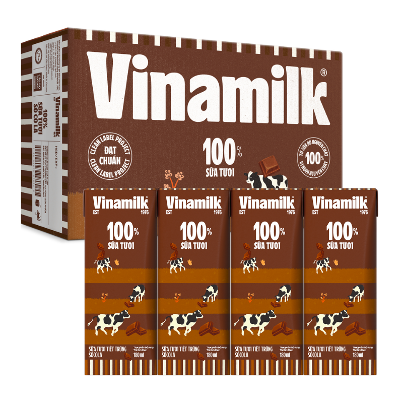 – Sữa tươi tiệt trùng Vinamilk 100% sữa tươi có hương sôcôla 180ml thơm ngon, dễ uống. Sữa được chế biến từ nguồn sữa tươi 100% chứa nhiều dưỡng chất như vitamin A, D3, canxi,… tốt cho xương và hệ miễn dịch.