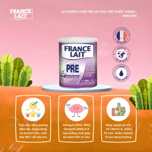 Sữa Pháp France Lait PRE 400g – Dành trẻ sinh non. Là giải pháp hoàn hảo cho trẻ sinh non, thiếu tháng, nhẹ cân hiệu quả nhập khẩu từ Pháp ngoài việc bổ sung dưỡng chất dễ hấp thu cần thiết còn cung cấp vitamin, khoáng chất giúp trẻ khỏe mạnh, tăng cân, bắt kịp đà phát triển.