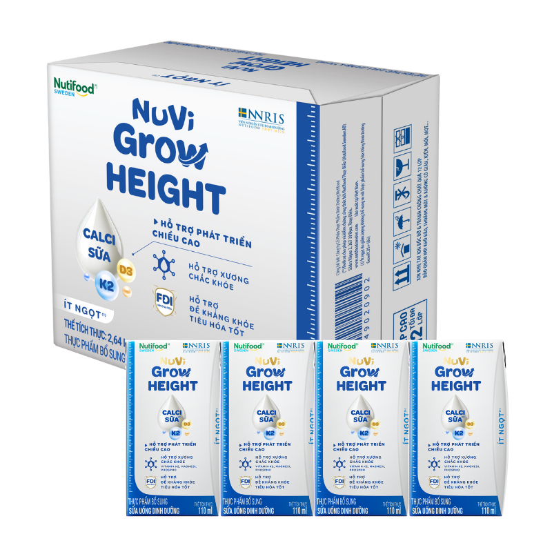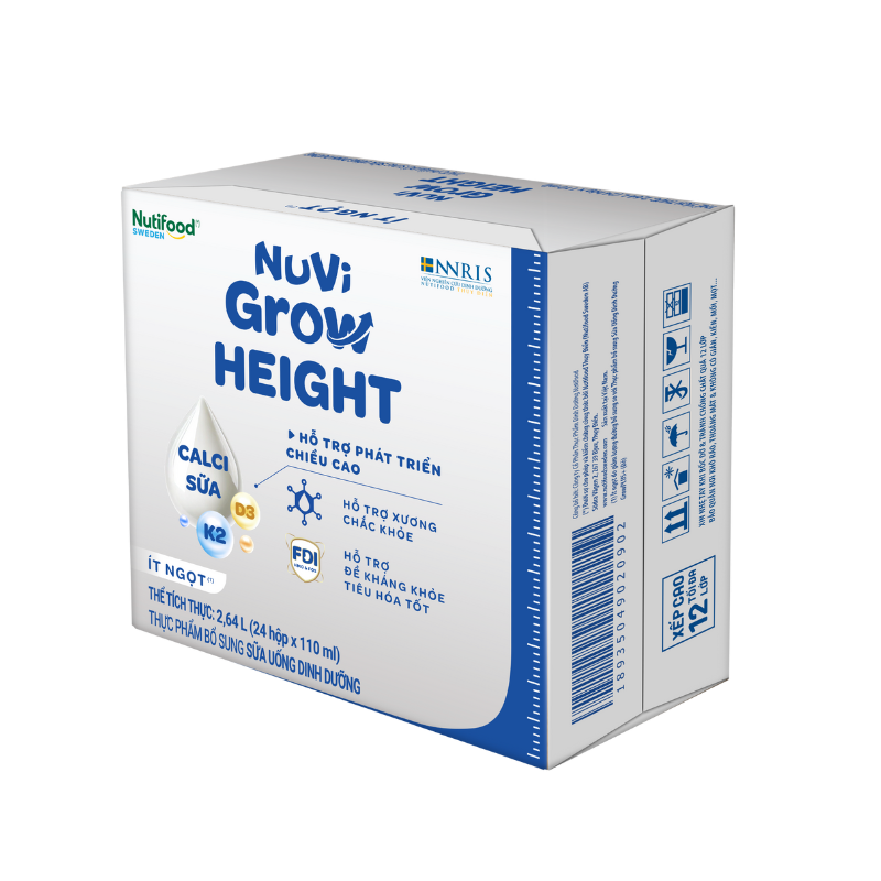 Thùng 24 hộp sữa pha sẵn Nuvi Grow Height 110ml (Trên 1 tuổi) - Hỗ trợ phát triển chiều cao