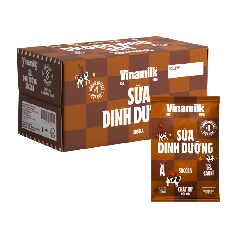 – Sữa tươi tiệt trùng Vinamilk 100% sữa tươi có hương sôcôla bịch 220ml thơm ngon, dễ uống. Sữa được chế biến từ nguồn sữa tươi 100% chứa nhiều dưỡng chất như vitamin A, D3, canxi,… tốt cho xương và hệ miễn dịch.
