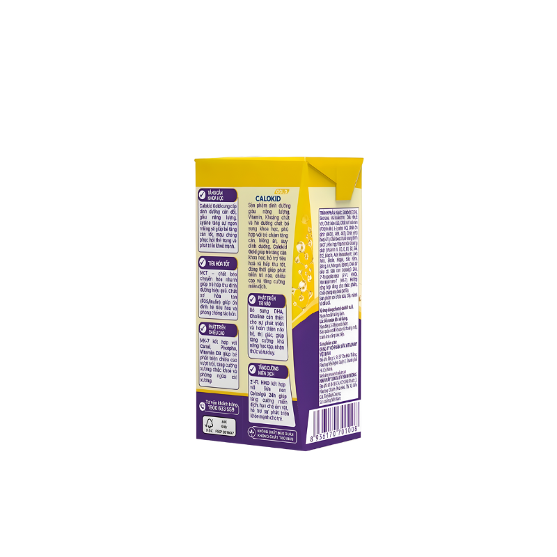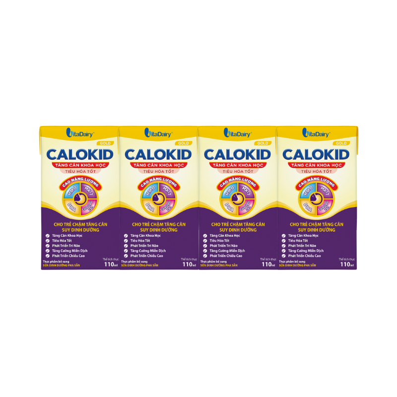 Calokid Gold – sản phẩm dinh dưỡng giàu năng lượng, Vitamin, Khoáng chất và hệ dưỡng chất bổ sung khoa học phù hợp với trẻ chậm tăng cân, biếng ăn, suy dinh dưỡng. Calokid Gold giúp trẻ tăng cân khoa học, hỗ trợ tiêu hóa và hấp thu tốt, đồng thời giúp phát triển trí não, chiều cao và tăng cường miễn dịch.