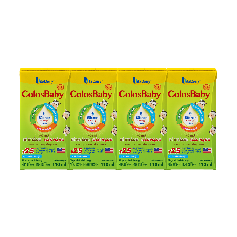 – Tăng cường đề kháng: Bổ sung Kẽm, Selen hỗ trợ sức đề kháng. giúp trẻ khỏe mạnh. Đồng thời sữa pha sẵn ColosBaby Gold cải tiến tăng gấp 2.5 lần lượng sữa non ColosIgG24h.
