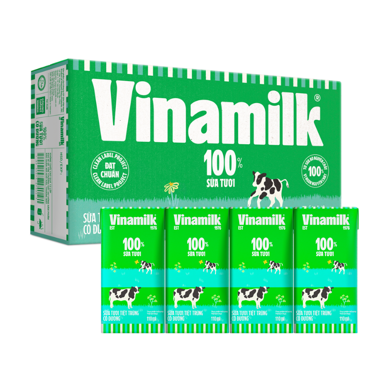 Thùng 48 hộp sữa tươi tiệt trùng Vinamilk 100% Có đường 110ml (Trên 1 tuổi)