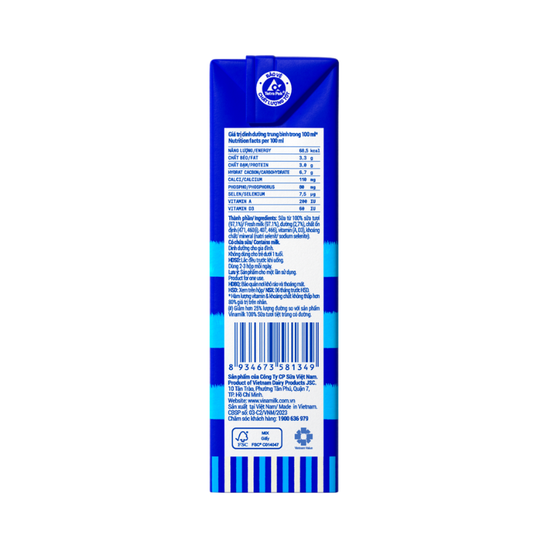 – 100% sữa tươi từ các bạn bò vui khoẻ: Được vắt và đóng hộp mỗi ngày đồng thời trên hệ thống 8 nhà máy và 13 trang trại rộng khắp đất nước giúp sản phẩm được vận chuyển nhanh nhất để luôn đảm bảo sự tươi mới khi tới tay bạn.