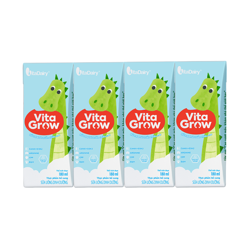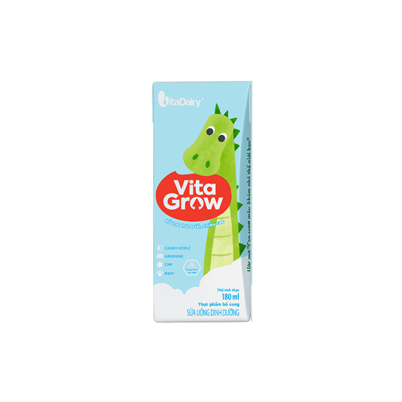 Sữa uống dinh dưỡng Vitagrow công thức cải tiến – Hỗ trợ phát triển chiều cao và phát triển trên nền công thức chứa Đạm cùng nhiều Vitamin và khoáng chất thiết yếu cân đối và đầy đủ giúp trẻ phát triển khỏe mạnh. Hơn thế nữa. công thức mới cải tiển và vượt trội hơn với Bộ 5 dưỡng chất : Canxi. Vitamin D3 & K2 cùng CPP. Arginine hỗ trợ phát triển chiều cao.