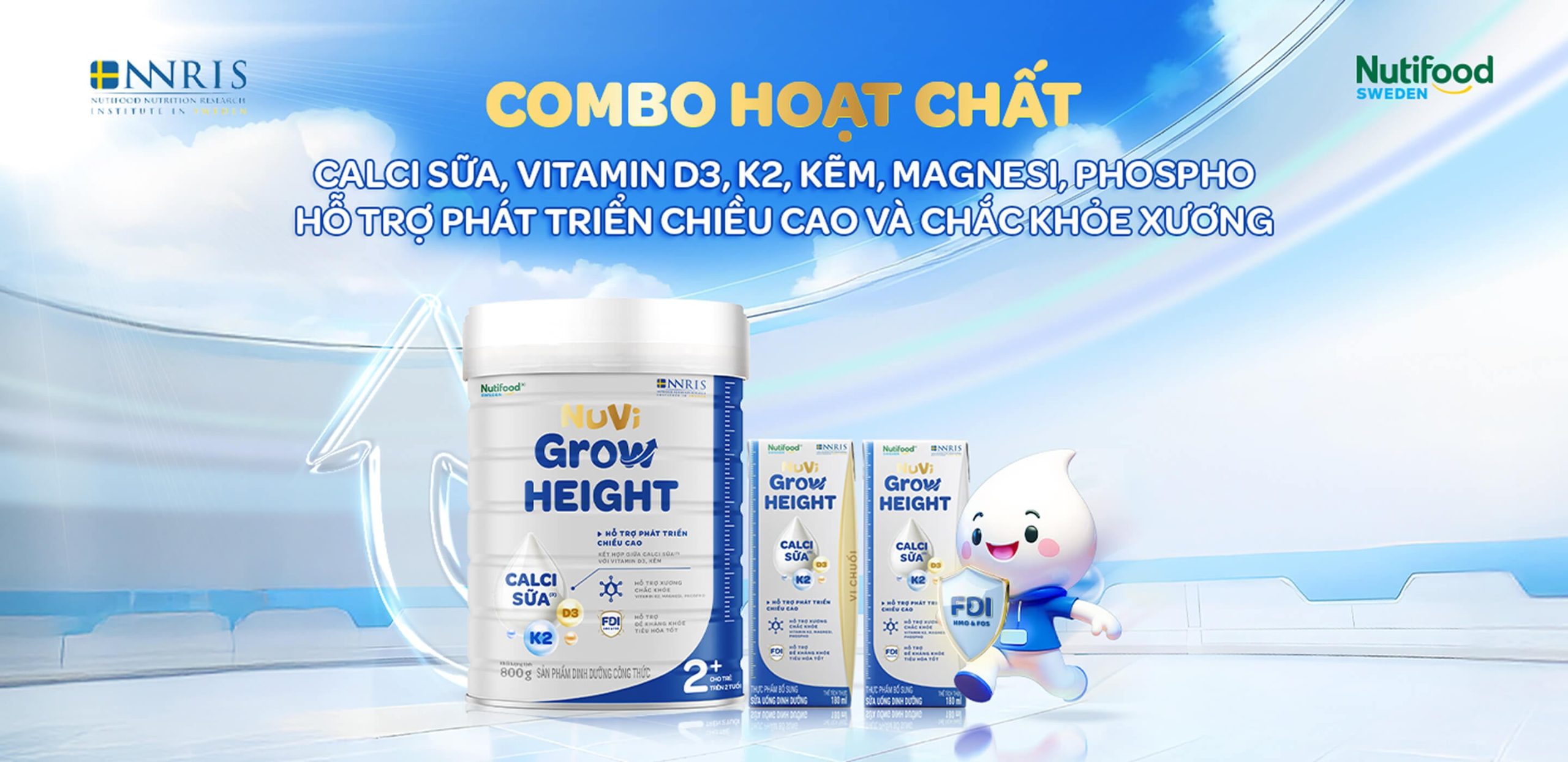 NUVI GROW HEIGHT được phát triển từ nền tảng cao lớn nay đã nâng tầm mang đến sản phẩm với công thức Combo hoạt chất hỗ trợ phát triển chiều cao và chắc khỏe xương. Sản phẩm được nghiên cứu bởi các chuyên gia dinh dưỡng Nutifood Thụy Điển, công thức FDI xây dựng nền tảng “Đề Kháng Khỏe, Tiêu Hóa Tốt”, bổ sung 2’-FL HMO kết hợp cùng FOS, Inulin giúp trẻ hấp thu tốt các dưỡng chất.